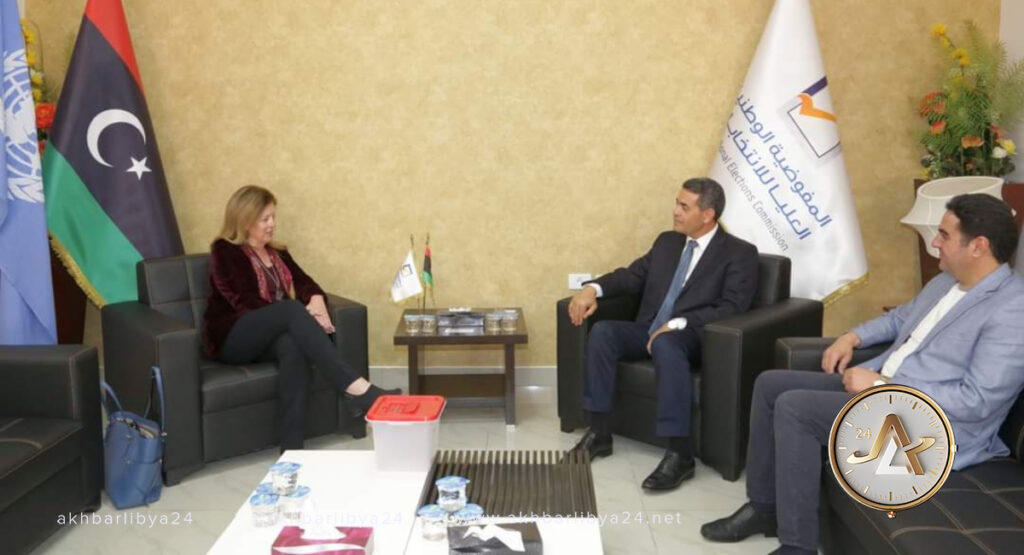بحث بمقر المفوضية رئيس مجلس المفوضية الوطنية العليا للانتخابات عماد السايح اليوم الأحد مع المستشار الخاص للأمين العام للأمم المتحدة ستيفاني ويليامز بحضور عضو مجلس المفوضية السيد عبد الحكيم الشعاب برامج التعاون بين المفوضية والبعثة،