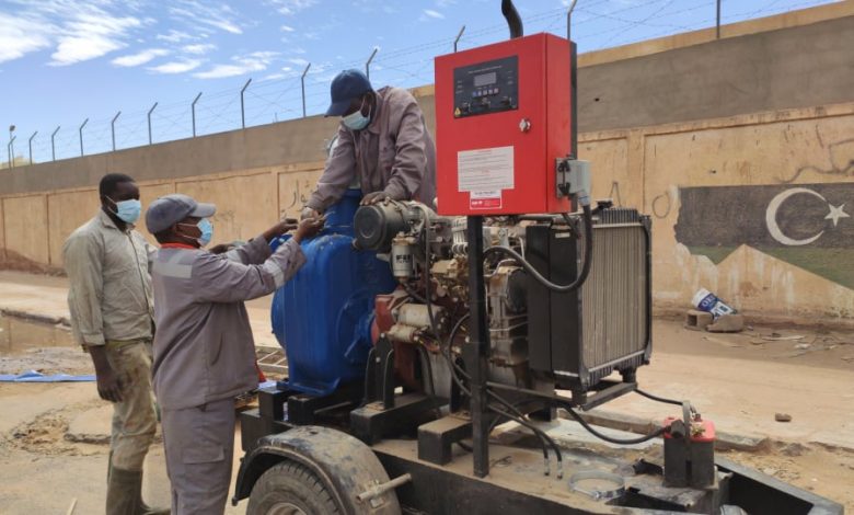 المبادرة الليبية الإنتقالية تركب مضخات الشفط لشبكة الصرف بسبها