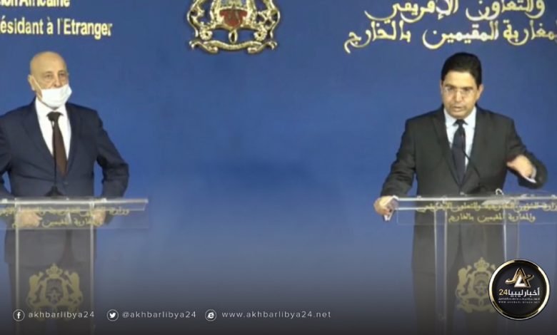 أخبار ليبيا 24 أكد وزير خارجية المغرب، ناصر بوريطة، أن تشكيل الحكومة المؤقتة في ليبيا عنصر أساسي لإتمام المرحلة الانتقالية عن طريق تحقيق الانتخابات الوطنية في موعدها المحدد. بوريطة خلال مؤتمر صحفي مشترك مع المستشار عقيلة صالح الذي يزور المغرب، شدد…