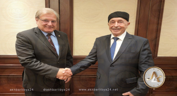 وأكد صالح خلال لقائه سفير أمريكا لدى ليبيا ومبعوثها الخاص ريتشارد نورلاند. في القاهرة. أنه سيسعى جاهداً لحلحلة أزمة إغلاق الحقول والموانئ النفطية.